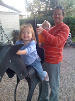After the train ride, we loaded up the kids and drove to Draper where we forced another meal...but to my surprise, I was actually able to eat more. I'm a pig, I know. I think I ate more than Andrey. The food was so good. We had my father in law take some pictures of our little family so we could have some outdoor ones for a possible Christmas card photo (so check your mailbox next month). The company was excellent, but we were sad to have missed Todd's family and Serenie's (can't wait to see all of you on Sunday). After the little ones entertained us for a few hours with sining, dancing, summersaults, and just being cute, we enjoyed all the pies that were made. Pumpkin, raspberry/peach, pecan, apple, cherry. Oh my goodness. So good. And the best part (in my opinion) is the cool whip to top it off. I was falling asleep in my chair and the girls were slowly dying down, so we called it a night a little earlier than planned, hitting the road at 7:30. The girls were out the minute they got buckled in.